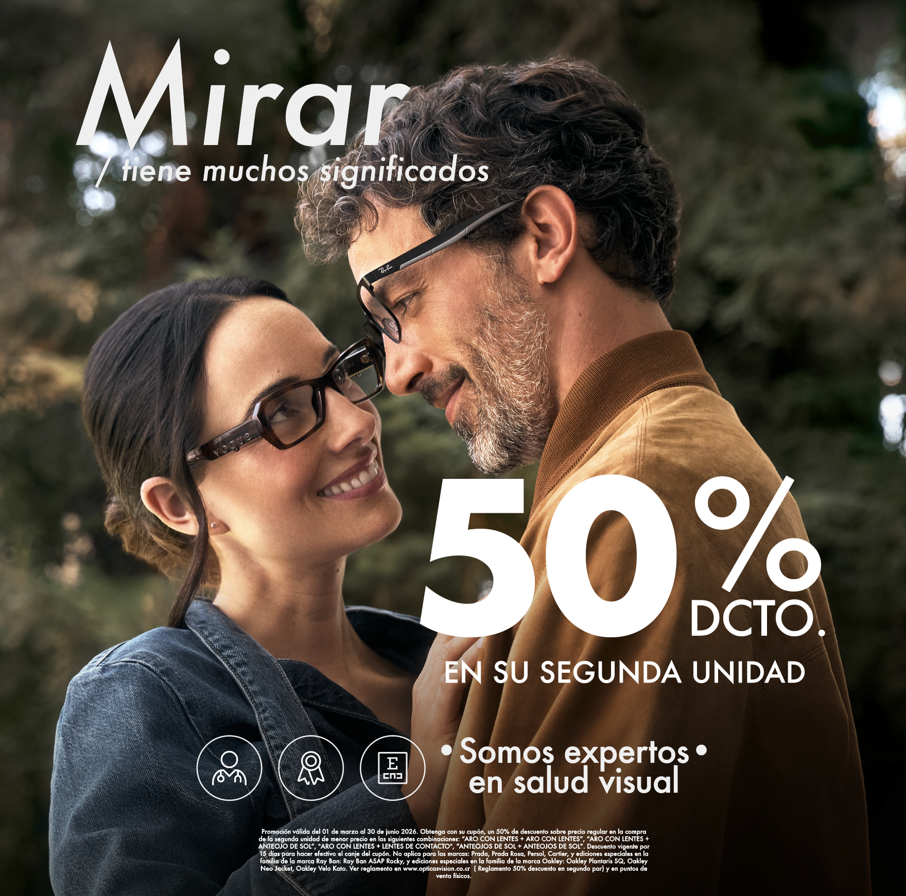 Obtenga con su cupón, un 50% de descuento sobre precio regular en la compra de la segunda unidad de menor precio en las siguientes combinaciones: “ARO CON LENTES + ARO CON LENTES”, “ARO CON LENTES + ANTEOJO DE SOL”, "ARO CON LENTES + LENTES DE CONTACTO", “ANTEOJOS DE SOL + ANTEOJOS DE SOL”. Descuento no aplica en líquidos y/o accesorios. Promoción no aplica para las siguientes marcas: Prada, Prada Rosa, Persol, Cartier, y ediciones especiales en la familia de la marca Ray Ban: Ray Ban ASAP Rocky, y ediciones especiales en la familia de la marca Oakley: Oakley Plantaris SQ, Oakley Neo Jacket, Oakley Velo Kato. Descuento no acumulable con otras promociones y/o descuentos. Promoción válida del 01 de marzo al 30 de junio 2026 en tiendas físicas Ópticas Visión y www.opticasvision.co.cr "Descuento vigente por 15 días para hacer efectivo el canje del cupón."